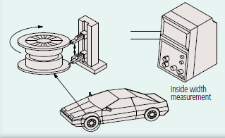 The following graphic depicts the measurement of the inside width of a car's wheel using this Mu checker system.